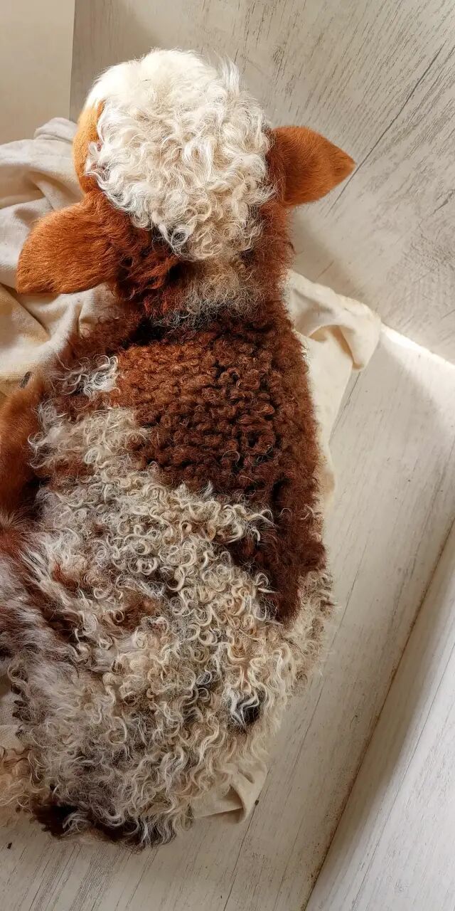 是的,她是棉羊,夏天前要剪毛,唉~但是她的毛太花了,不值钱。还是白羊的毛好。