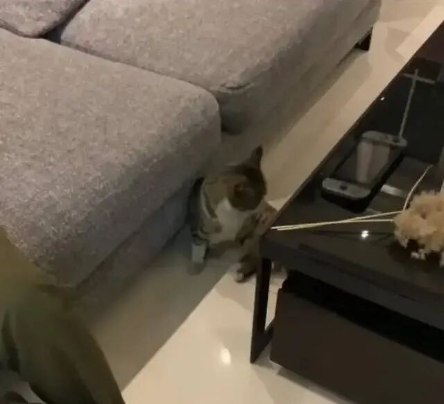 满屋乱转喵喵叫了半天,猜它是饿了,给吃了俩火腿之后![]()