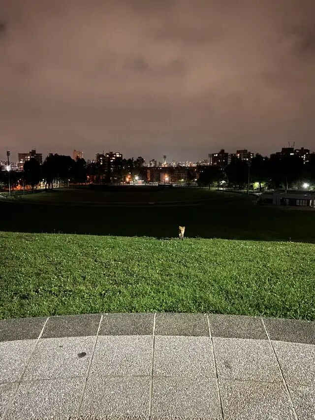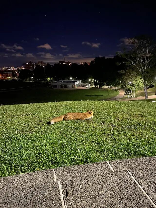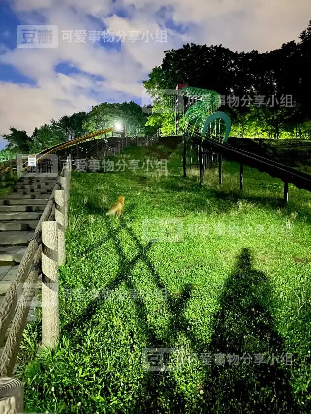 晚上一到这个山坡上的长椅上坐下来,这只宝宝就屁颠屁颠的跑过来趴在了草坪上