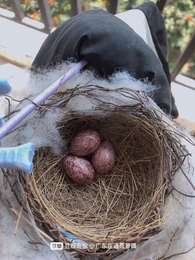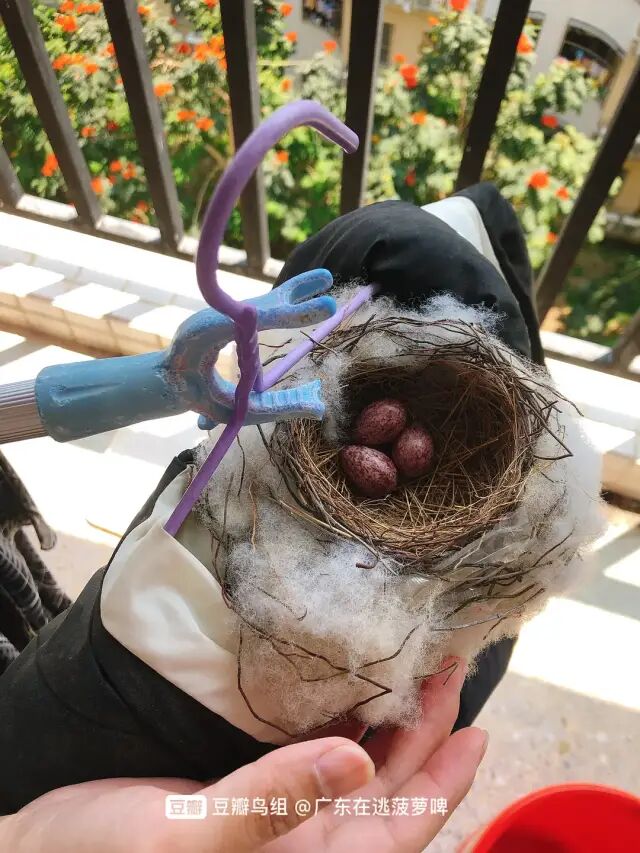 鸟窝搭的太讲究了,外层保温棉,中间粗树枝搭结构,里面细树枝填充