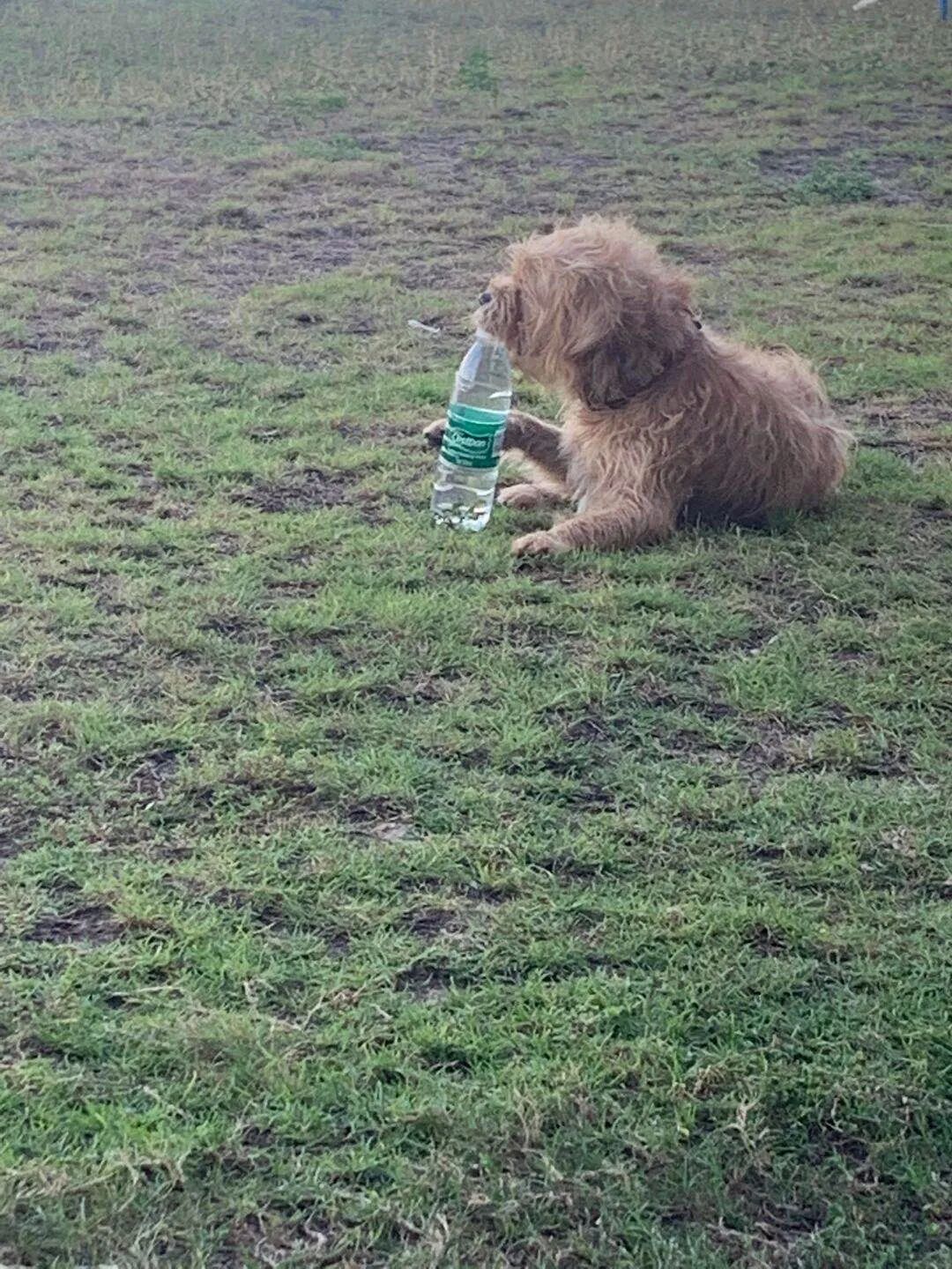 哈哈哈,我家狗狗就喜欢开瓶盖,开完瓶盖就不玩瓶子了,所以每次我把喝完的瓶子都拧得紧紧地让它开着玩,我家狗可以跟这只狗狗一起合作,一个偷一个开
