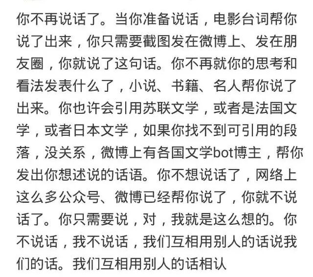 最后回应一下热评:很多时候我们说的「我也这么觉得」确实是一个敷衍客套而已,但是我这里想要表达的是,当我们想要表达什么的时候,可能会出现「失语」,而不得不说「我也这么觉得」的这种情况~
