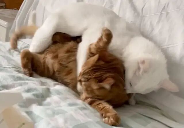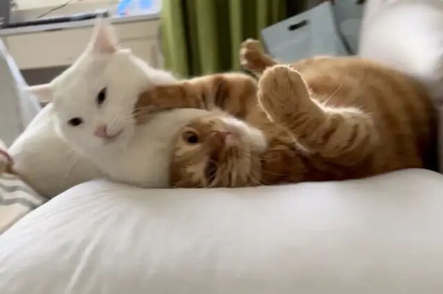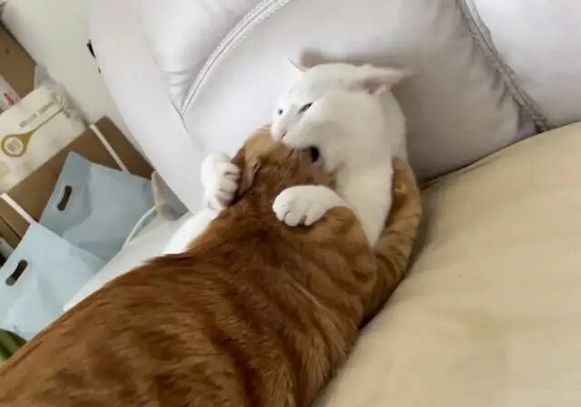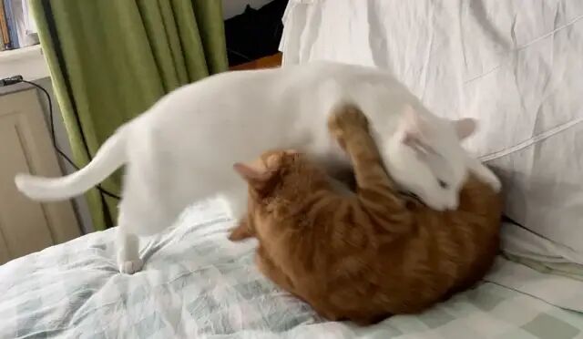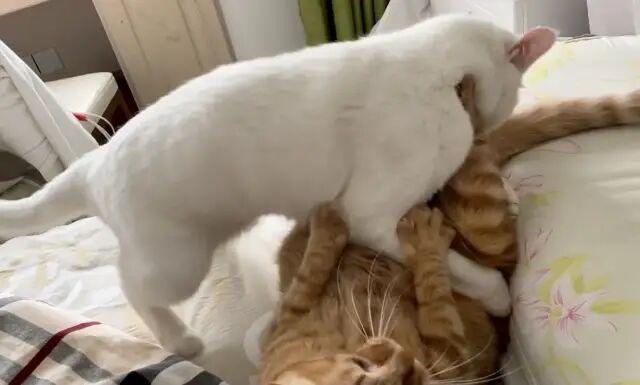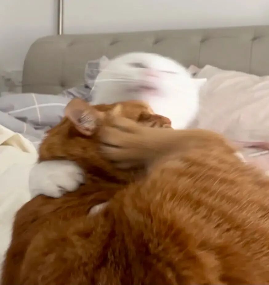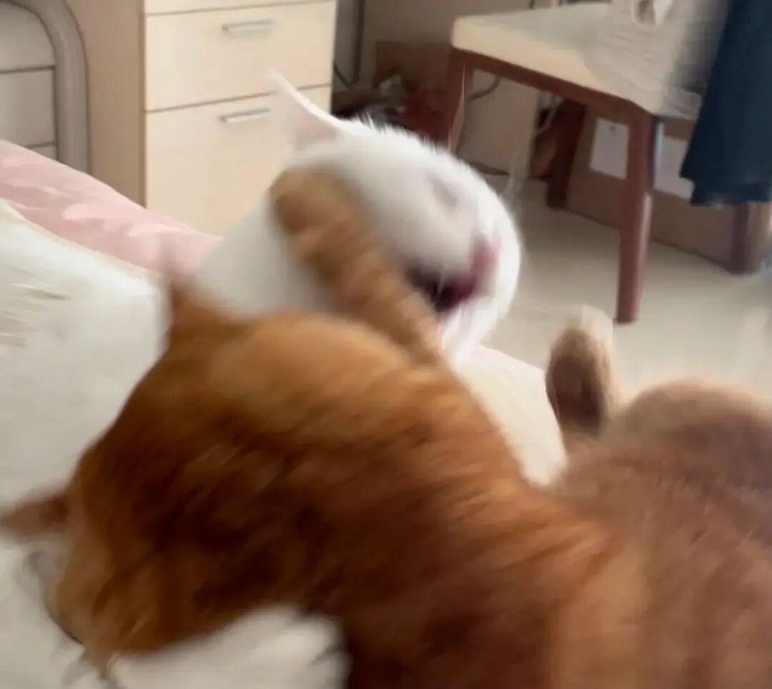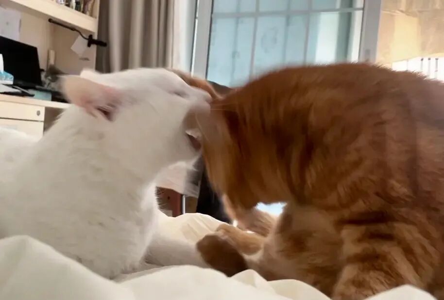 他俩对于抢床头迷之执着,每天都要为了谁在我头边睡打架