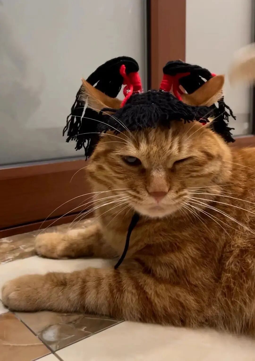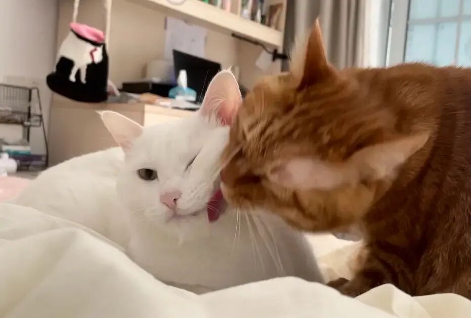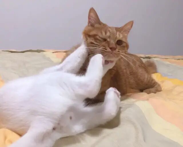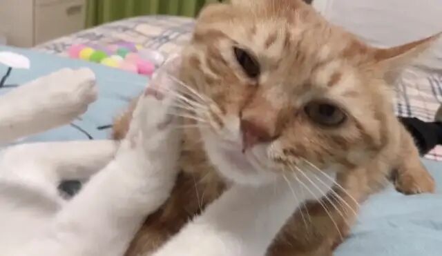 橘哥眉毛挂彩了,被啃了个小口子,心疼