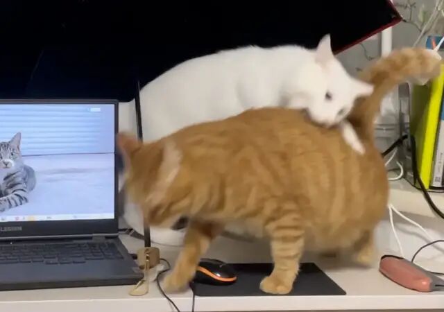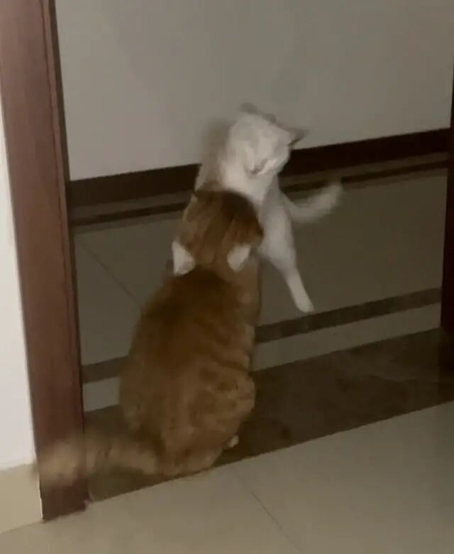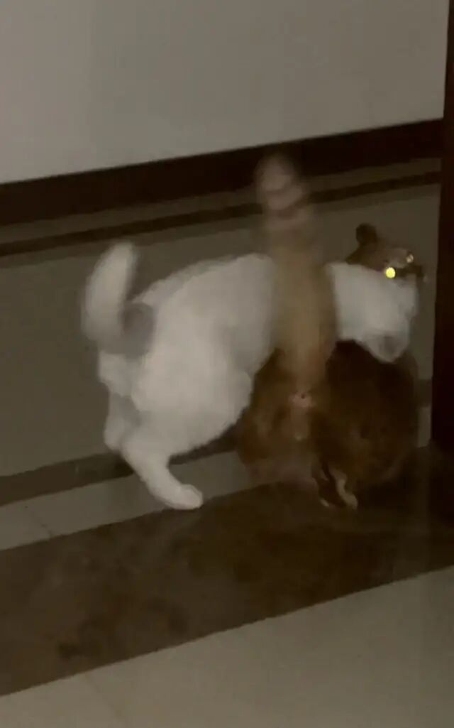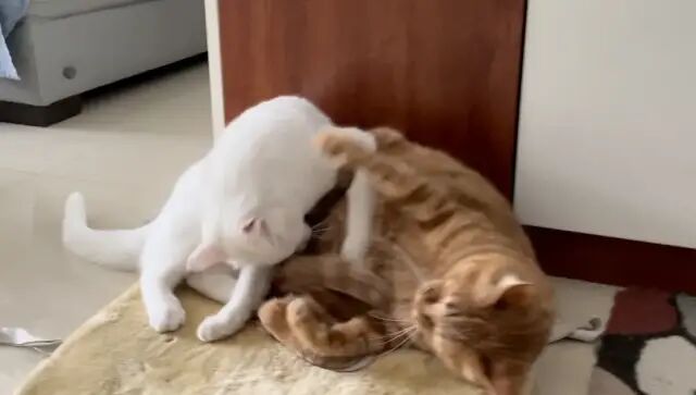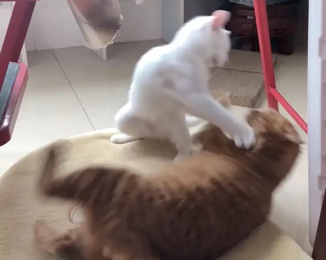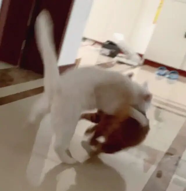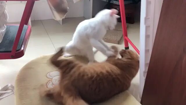 两个月大,身子没比哥哥的尾巴粗多少,但是已经有了一颗想拆哥的心
