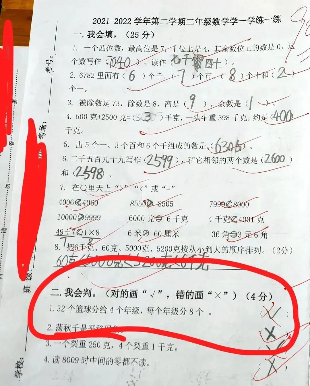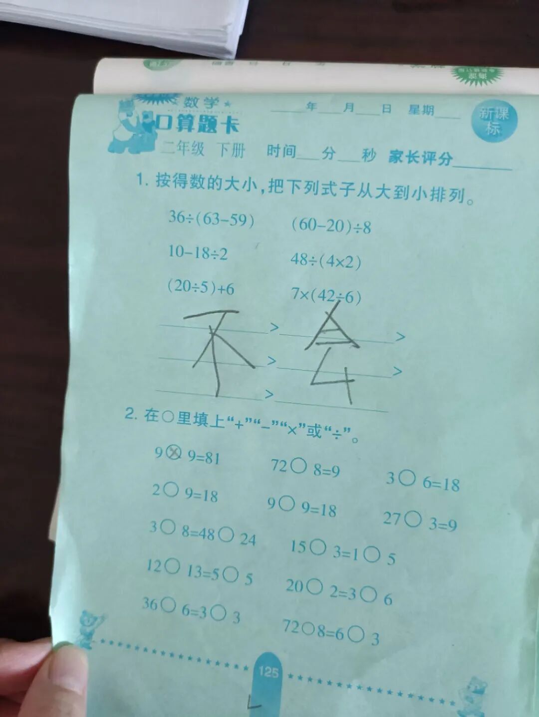 二年级的娃,两个要上班的大人,留他一人在家,布置让他白天写几页口算作为作业。这个题只是说分给四个年级,并没有说一定要平均分,也可以按照不平均分。所以是错的,这个题最后一句的答案太确定了。应该用“或”之类的词语儿子一年级,写字实在是太丑了,我给他买的字帖他都不好好写,于是我又买了一些有趣的控笔训练的字帖。@七喵爸-S&JPapa