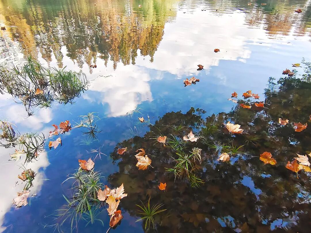 池中浮影 之前在公园里晨跑意外看到的,池塘里倒映着天空和树影 来自豆瓣小组“无用美学”
