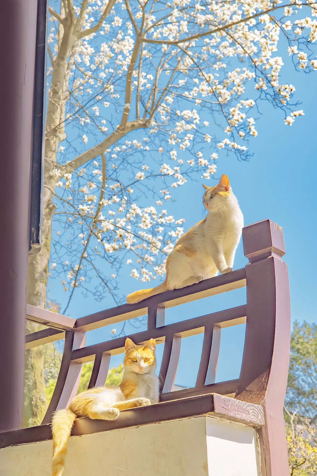 玉兰花下橘凭栏 下午拍的,这个春天的第一张玉兰花和猫