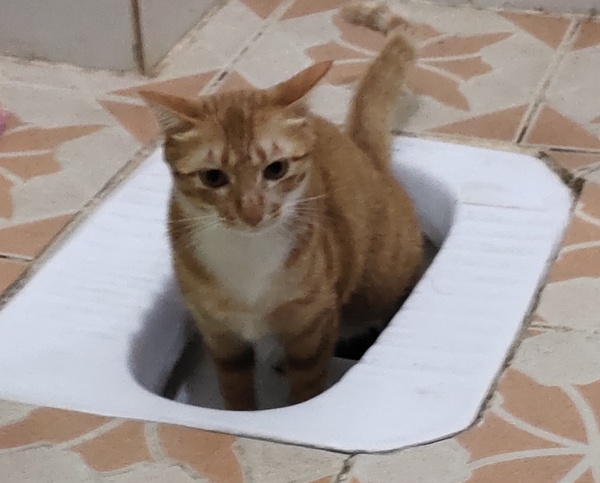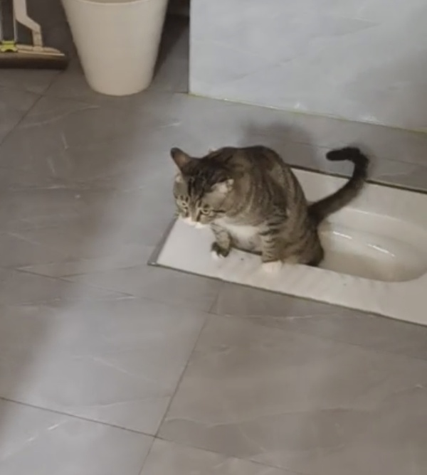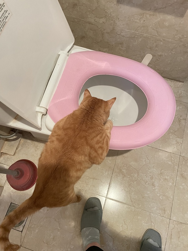 哈哈,我家橘猫也是自己看着会了。还经常在我洗澡的时候嗷嗷叫,催我出来,她要上厕所。
