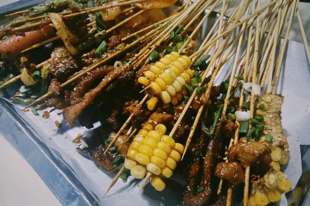 妹子去了当地最出名的英子炸串,一条街开满了炸串店,只有这家排队排出了半条街。
