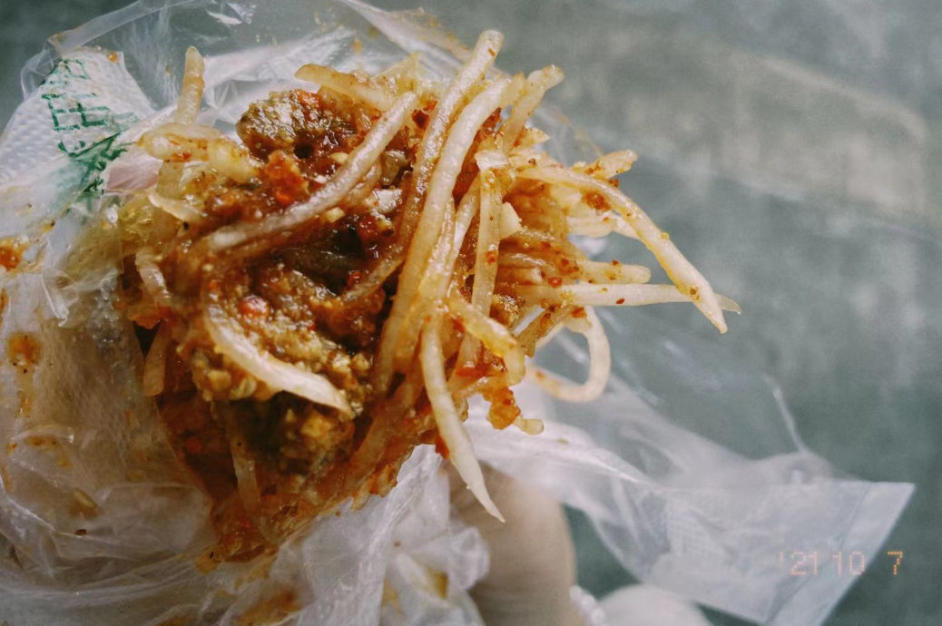 里面塞了满满当当腌制过的白萝卜丝。