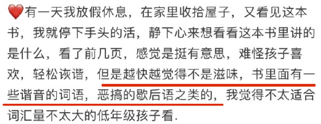 刚开始她还跟个正常人似的,知道不能根据大人的想法随意批判孩子的读物。