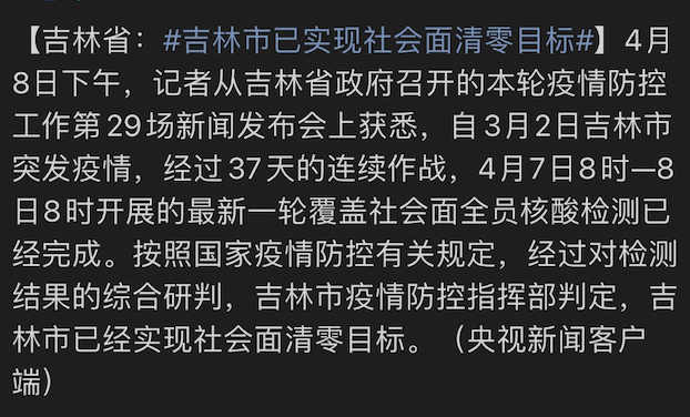 好消息是,吉林市在4月8日下午实现了社会面清零目标。