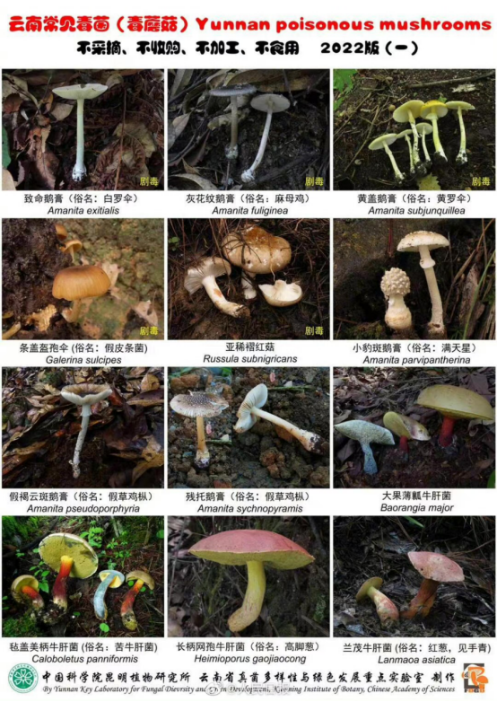 昆明植物研究所也为此操碎了心,吃菌菇的季节一到,就火速对云南常见毒菌挂图进行了更新。