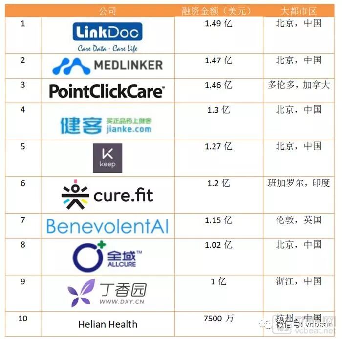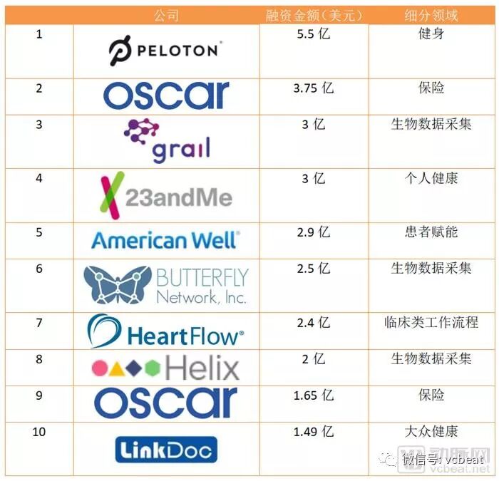 Startup Health 数字医疗投融资TOP榜单