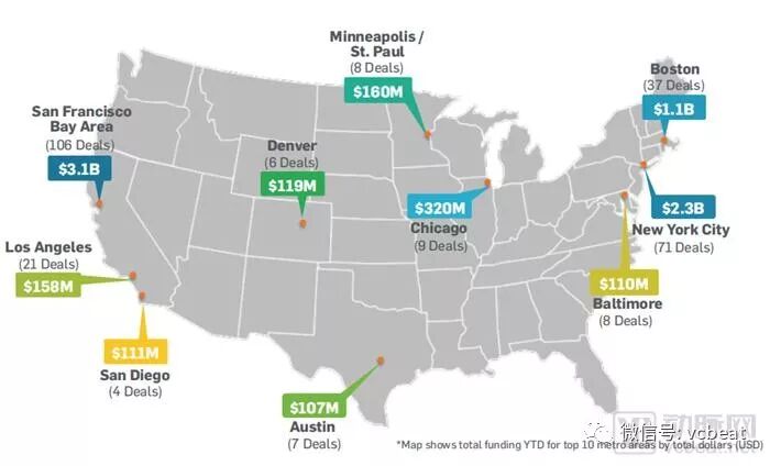 3.纽约仍然是美国投融资最活跃的地区,伦敦在欧洲遥遥领先。