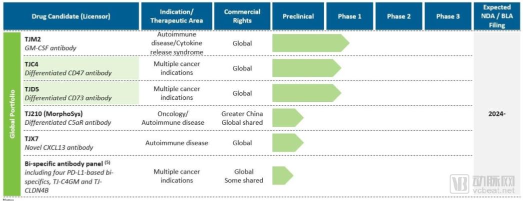 天境生物其余的几条引进产品管线也都进展顺利。五条主要产品管线都已经顺利进入临床阶段。