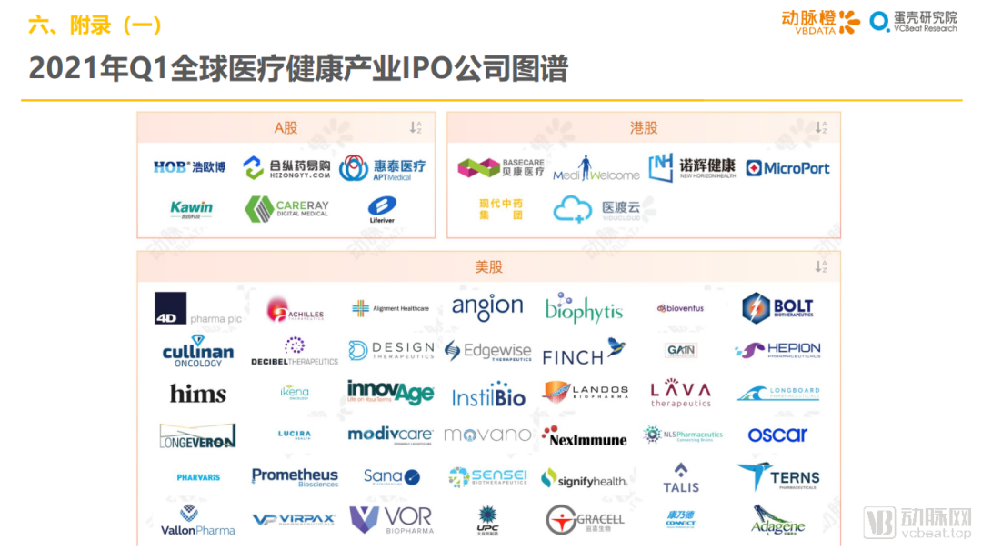 三.2021年初全球范围内的投资机构继续保持对生物医药领域的高度热情;高瓴创投完成13笔投资,成为Q1国内投资医健初创公司最为活跃的机构。