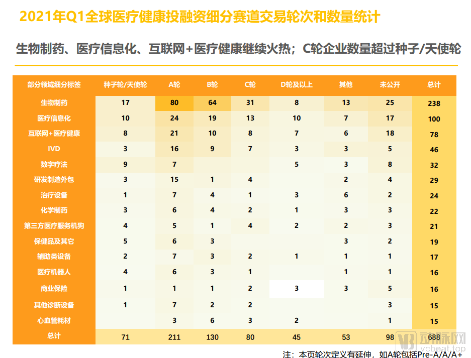 2.3 生物制药、医疗信息化、互联网+医疗健康继续火热;热门赛道C轮企业数量超过种子/天使轮