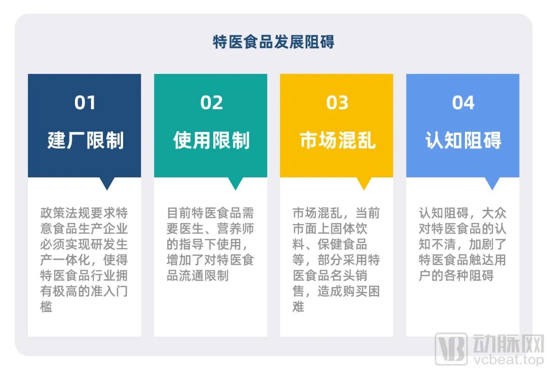 但特医食品要能够触达用户,目前仍旧面临多重阻碍。比如建厂限制、使用限制、市场混乱、认知阻碍等等。