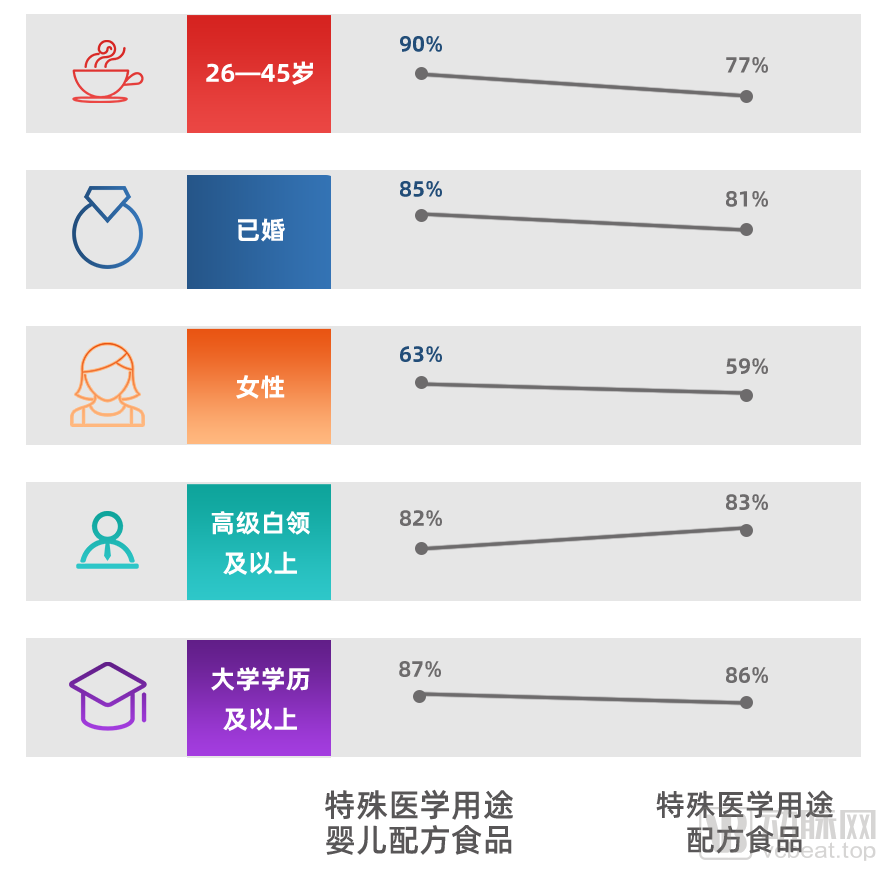 无论是购买特殊医学用途婴儿配方食品还是特殊医学用途配方食品,用户均多为26-45岁的已婚女性,并具备较高的学历及生活水平。