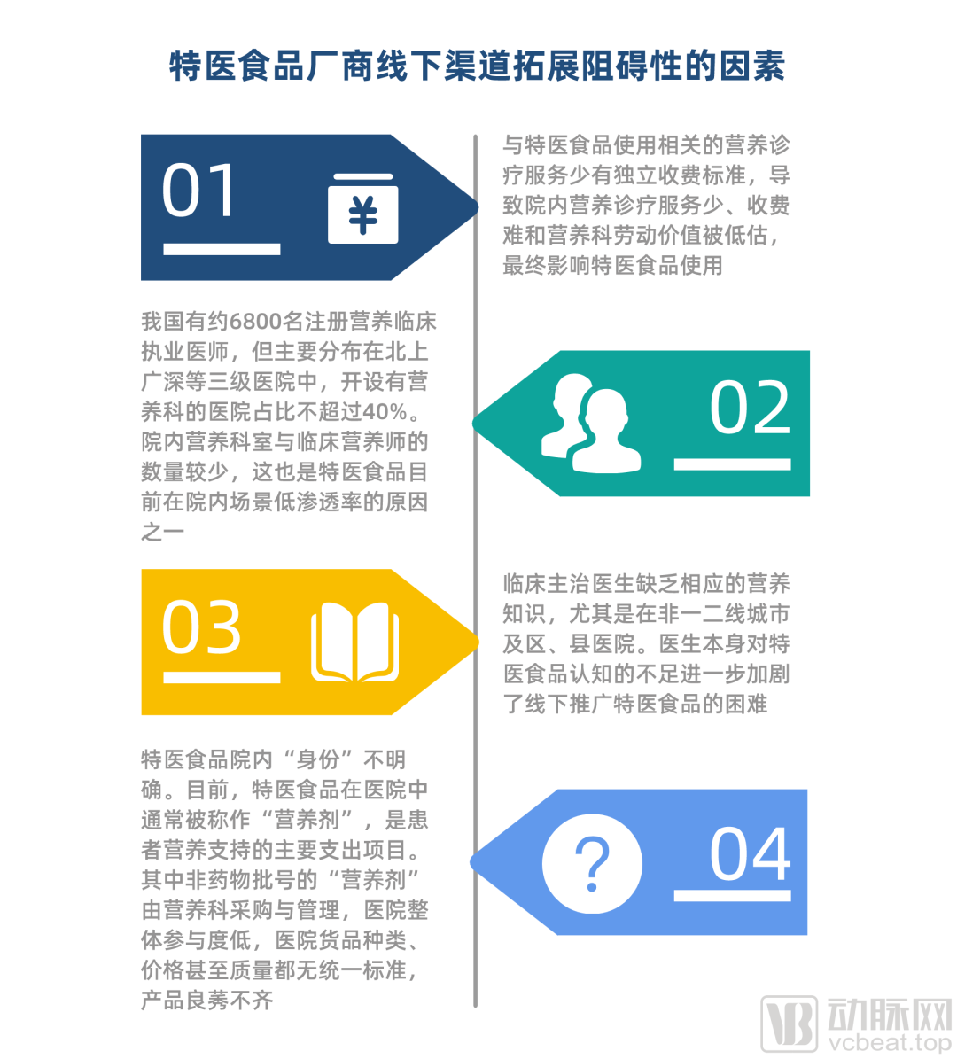 也是这一规定,让线下医院成为了部分特医食品企业首选的触达消费者的场景。但是院内营养支持现状往往成为特医食品厂商线下渠道拓展阻碍性的因素。原因如下: