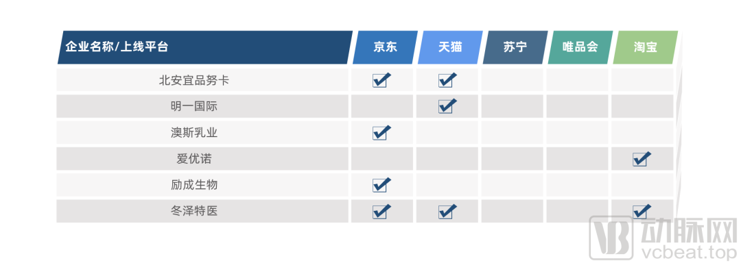 据动脉网统计,在32家获批特医食品的企业中,共有13家企业目前在前述电商平台均有布局,占比已达40.6%。更有部分企业表示后续有上线电商平台的意愿。虽然部分布局电商平台的企业目前仍未上线特医食品,但前期布局为其后续特医食品的上线做好了铺垫。