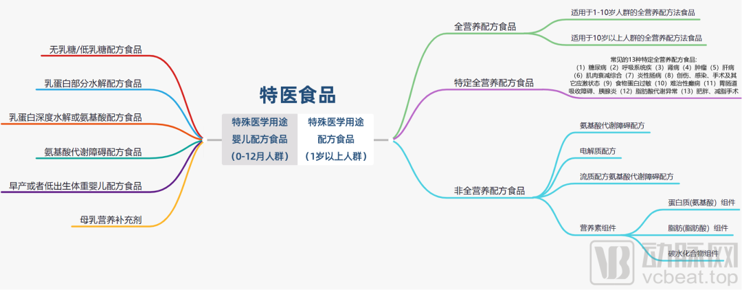 2010年《特殊医学用途婴儿配方食品通则》界定了特殊医学用途婴儿配方食品的概念与分类;2013年《特殊医学用途配方食品通则》界定了非婴儿特殊医学用途配方食品的概念与分类。因为后者覆盖年龄阶段更广,也常常被外界称为成人特医食品或非婴儿特医食品,以便与整体概念的“特医食品”进行区分。