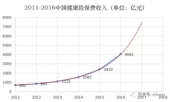 2016年,中国健康险市场规模为:寿险1万6千亿,健康险4千亿。这两类为主的健康领域保险从整个市场份额的62%上升至接近70%。