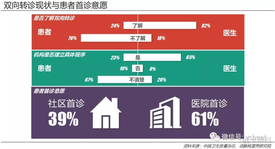 我们认为,双向转诊是医联体建设落地公立基层医疗机构的重要特征,因此基于“双向转诊”的医生、患者的调研结果,可以很大程度上体现医联体的业务逻辑到底有没有在基层落地。