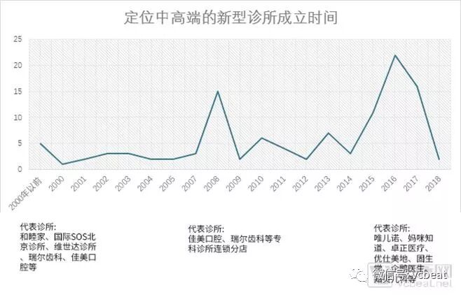通过这些诊所的注册时间进行统计,我们发现了中高端新型诊所的三波发展浪潮。