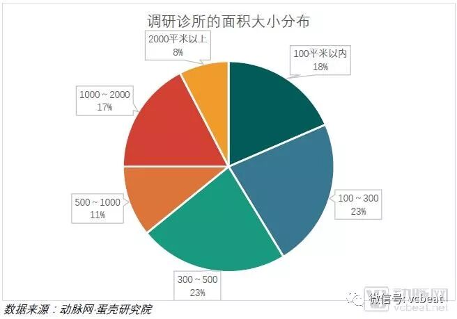 面积小于100平米的诊所,全部是定位于社区医疗服务的个体诊所,这类诊所的竞争力差,在蛋壳研究院调研诊所中占到了18%。
