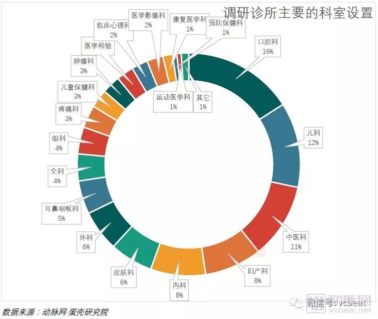 第三波中高端诊所和前两次发展的区别在于,除了小部分综合类门诊外,用户需求逐渐细化,口腔科、儿科、中医科等细分科室的中高端专科诊所大量出现。
