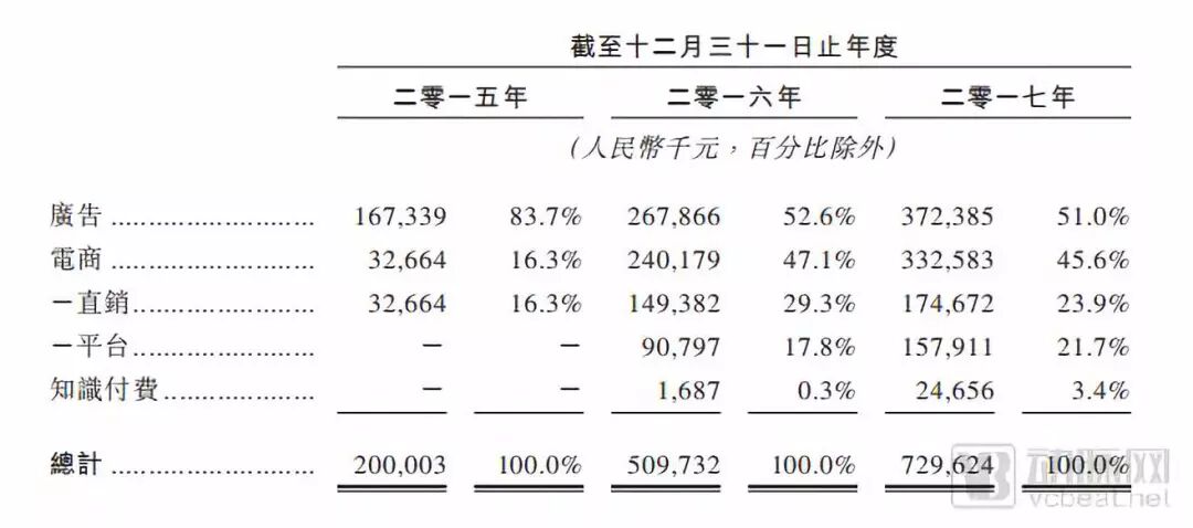 2017年营收7.29亿元,广告和电商为主要收入来源
