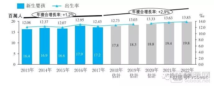 预计新生婴孩数目将于未来数年持续上升,线上年轻家庭平台的目标用户人数预计到2022年将增至5.994亿人。