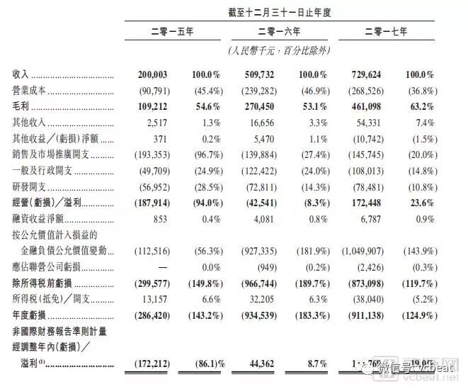 招股书显示,宝宝树2015年-2017年营收为2亿元、5.09亿元、7.29亿元。毛利率分别为54.6%、53.1%、63.2%。2015年-2017年年度亏损2.86亿元、9.34亿元、9.11亿元。2015年经调整年内亏损1.72亿元,2016年为0.44亿元,2017年为1.38亿元。