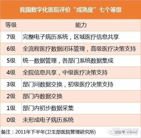 那么如何评判数字化医院呢?在2011年下半年(卫生部医院管理研究所)颁布政策中提到了评审数字化医院的七个成熟度: