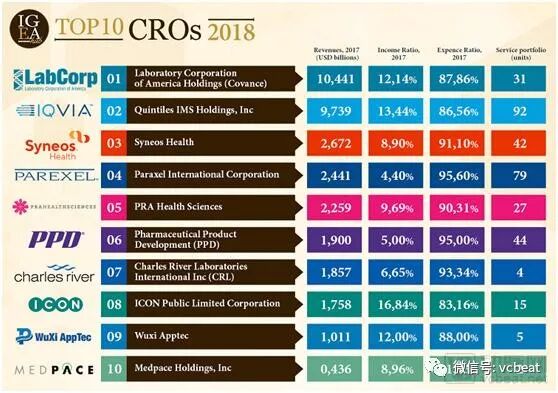 据igeaHub数据,精鼎医药2017年营收达到24.41亿美元,在全球CRO(合同研发组织)中排名第四。