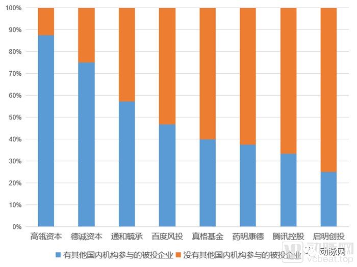 高瓴资本和德诚资本投资的国外企业大多都有其他国内机构的身影。另一方面,真格基金、药明康德、腾讯控股和启明创投则较少与国内机构一同投资。这种结伴出资上的差异可能也表现出这些投资机构在信息获取渠道上的不同。结伴出资较少的机构可能已经建立了自己独特的国外项目获取渠道,形成了自己的信息网络,有能力挖掘出一些曝光度较低的好项目。