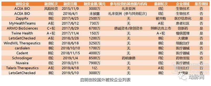 启明创投在国外的投资参与的轮次非常靠后,只有4起A轮投融资事件,其余事件均在B轮及以后。同时启明创投在2019年上半年已经连续出手四次,看起来似乎想进一步加码国外医疗健康产业。