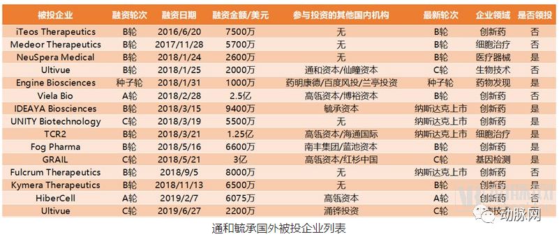 通和毓承自成立以来,一直在关注国外医疗领域。先后参与了15起国外医疗企业的投融资事件,几乎与其国内投资事件持平,其中有四家企业成功上市。
