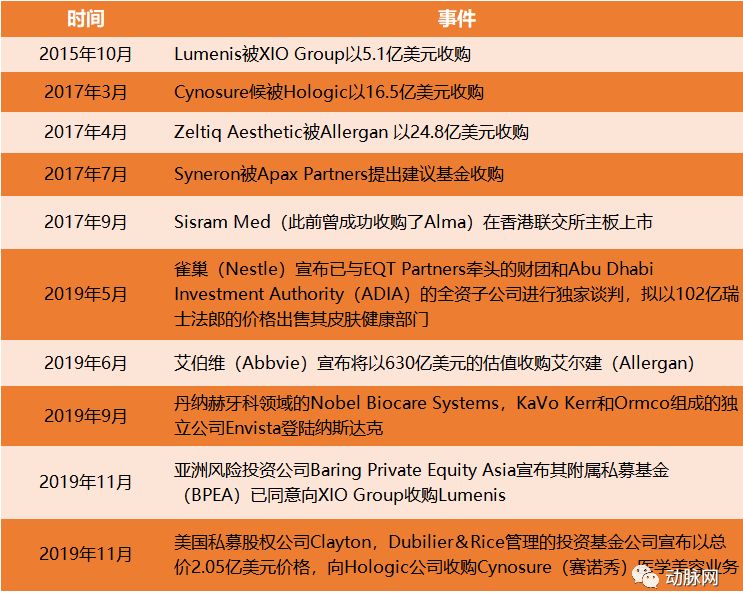 11月20日,美国私募股权公司Clayton,Dubilier&Rice管理的投资基金公司宣布以总价2.05亿美元价格,向Hologic公司收购赛诺秀(Cynosure)医学美容业务,收购的财务细节尚未披露。