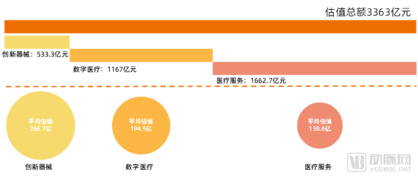 3、估值总额3363亿元,创新器械平均估值最高