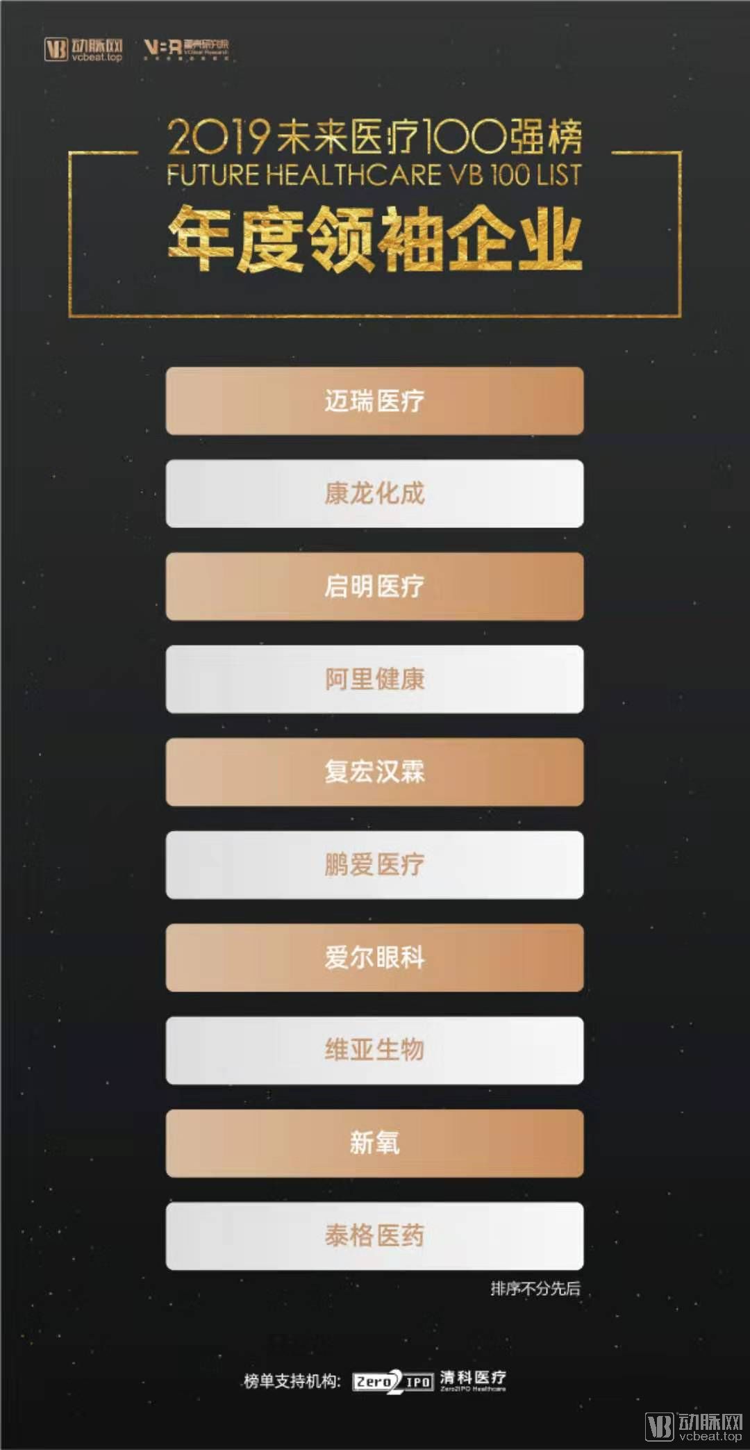 本场峰会揭晓了大健康领域年度领袖企业TOP10,动脉网在医疗健康领域甄选出能代表未来医疗的中国创新企业。作为这个领域的核心推动力量,这些企业将引领医疗服务、 数字医疗、生物技术、精准医学、以及医疗器械等领域的深度应用。