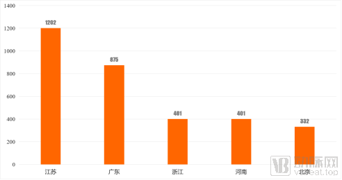 图8 2019年国内三类医疗器械首次注册数量TOP5地区