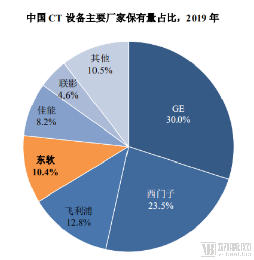 这些产品的不断迭代已经逐渐获得市场的认可,据2019年数据显示,东软医疗CT在国内市场份额占比10.4%,仅次于GPS。同时,东软医疗1.5T磁共振的保有量也在国内品牌中取得第二的名次。