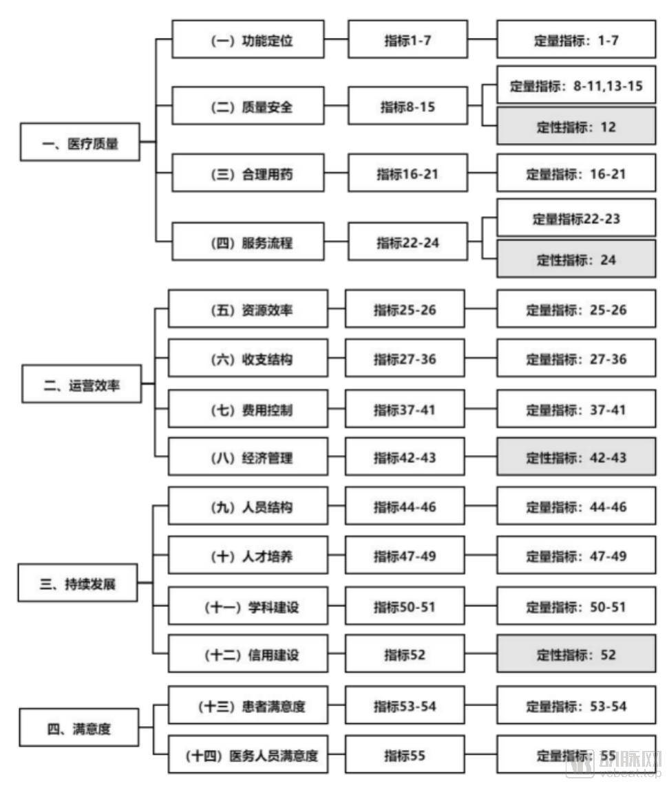 首先,回顾卫健委官方提出的本次绩效考核结果展示的六大成果,一是功能定位落实;二是医疗质量与安全提升;三是医院运营效率与内部管理水平提高;四是持续发展机制逐渐健全;五是患者满意度提升;六是委属委管医院国家队作用凸显。对此,动脉网对卫健委给出的数据做了重点摘录与分析。