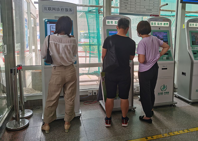医院大厅的互联网诊疗自助服务机,是线上线下流程的连接点(如检查单打印)