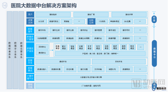 “我们医疗大数据平台的发展方向可以分为三个步骤,一是推动医院数字化建设,用大数据平台优化医院的管理,这是第一步;有了数据的沉淀,我们将基于平台与数据开发一些专病AI,推动专科专病化发展。”华卓科技王敏会表示,“做好了这些,我们会将应用延伸至患者,通过大数据优化患者的疾病管理。”同时,医院和企业还需构建双赢的合作关系:对于医院而言,平台除了稳定可扩展外,还能够实现各类应用的“热拔插”。在这种关系下,医院既拥有了使用应用的能力,又拥有了选择应用的能力。而对于企业而言,有了平台作为基础,后续应用的开发将更加便利,而最终形成的产品,也将更加契合平台,为医院带来更好地体验。不过,从信息科的角度来看,医疗大数据平台能够保证平台提供商应用的有效开发,便于医生进行科研探索。但对于医院内的其他厂商而言,这些数据依然是不透明的、不共享的,这意味着开发商在处理应用时,仍然会出现数据重新清洗的问题。种种症结之下,“数据中台”这一概念开始由金融、电商转入医疗信息化,作为处理老问题的新方法。数据中台是一套可持续“让企业的数据用起来”的机制,一种战略选择和组织形式,是依据企业特有的业务模式和组织架构,通过有形的产品和实施方法论支撑,构建一套持续不断把数据变成资产并服务于业务的机制。这一概念最初由阿里巴巴提出应用于电商,并应其效用逐渐在这一领域中成为标配。与电商、金融领域的数据中台有些许不同,以惠每科技的数据中台为例,医院可以将各种原始数据导入中台,中台将自动对各类数据进行规范化处理,形成数据地图,以便于后期的应用与调取。不过,数据中台的创新之处不仅在于其功能。惠每科技CTO王实曾任职于阿里,他表示:”医院的数据中台强调的是数据的实时管理与应用,强调集中治理与数据的对内透明。很多时候医疗数据被采集后是存储在厂商的架构里,导致医院被医疗IT厂商‘绑架’,而中台要做的,便是把数据的管理权,还给信息科。”信息管理角色的转变非常重要,尽管拥有大数据平台,但医院需要做科研时,仍需要找到相应的IT厂商,告诉厂商需要什么数据,让厂商来帮忙跑。而若将数据的管理权交至信息科,厂商需要什么数据,信息科就开什么接口,给什么数据,这样下来,一是降低了重复清洗的成本,二是解决了接口不互通导致的数据孤岛问题,三是提高了医疗应用的开发效率。目前,医院采购数据中台的客单价大致在1000万左右,整个市场正处于初期。但从医疗信息化的发展来看,随着医院的评级逐渐到达国家标准,再往上走,中台的应用便愈发重要。“低等级的评级仅注重数据质量的整体合格,但高等级的评级,以及现在要求的数据上报,都在要求医院将数据质量这一环节拎出来评审,进行更为精细化的管理。”王实表示。医疗信息化赛道的制胜关键在于把握政策发展的未来路径,从现状来看,惠每科技、卫宁健康等中台相关企业,已在市场初期打出一手好牌。要将临床数据进行价值的最大化挖掘,一方面可以帮助医生优化临床路径,选择更好的治疗方式,另一方面则可推动医院与药械、保险企业的合作,开发新的药械、推动商业保险对于医保外疾病的覆盖。