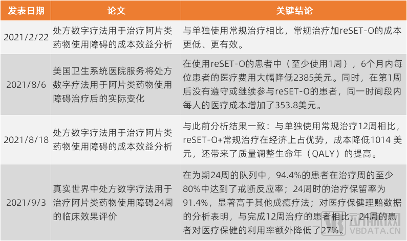 这些论文从不同维度展现了PDT产品reSET-O的安全性、有效性和卫生经济价值。例如,与单独使用常规治疗相比,常规治疗加reSET-O的成本更低、更有效。在使用reSET-O的患者中(至少使用1周),6个月内每位患者的医疗费用降低2385美元;而在第1周后没有遵守或继续使用reSET-O的患者,同一时间段内每人的医疗成本增加了353.8美元。